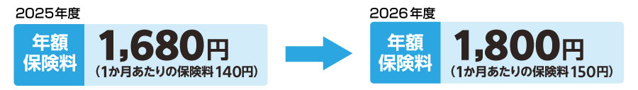 2026年4月1日以降に保険期間が開始するご契約(継続契約を含む)について、物価の上昇や高額な賠償事故の増加を踏まえ年額保険料を1,680円から1,800円に改定いたします。